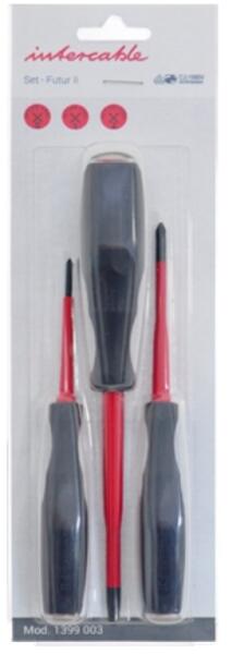IN TERCABLE Csavarhúzó készlet bliszter 3 db, VDE, SLIM, Philips (1399003) Termék információ: Nagy ellenállású króm-vanádium-molibdén-acélból készült penge, edzett, felületi polírozott védelemmel Készlet tartalma: 1 PH0 x 60 mm csavarhúzó - 13020 1 PH1 x 75 mm csavarhúzó - 13021 - SLIM 1 PH2 x 100 mm csavarhúzó - 13022 - SLIM