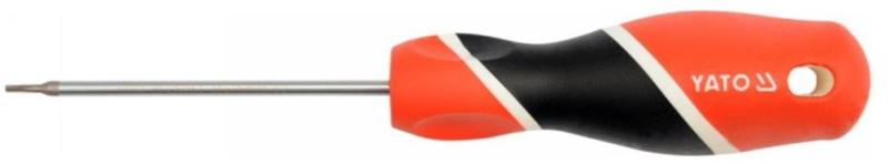 YATO YT-25951 TORX T6x75 mm csavarhúzó, hengeres szár, S2 acélból, kb. 58 HRC-re edzett. A szár felülete szatén, a hegye edzett és homokfúvott / ez növeli a penge stabilitását /. A markolat speciálisan kiválasztott, különböző keménységű műanyagból készül. Rendeltetésszerű használat / alkalmazás Professzionális összeszerelési munkákhoz különböző ágazatokban M