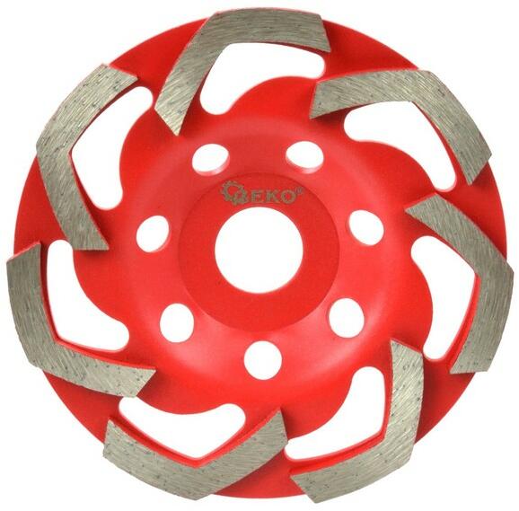 Gyémánt csiszolókorong 125mm L-Shape L- Shape gyémánt csiszolókorong beton csiszolásához 125 mm-es átmérővel, 5 mm-es csiszolófelület-vastagsággal. Technikai paraméterek: Korong átmérője: 125 mmCsiszolófelület vastagsága: 5 mmSzerelőfurat: 22,2 mm