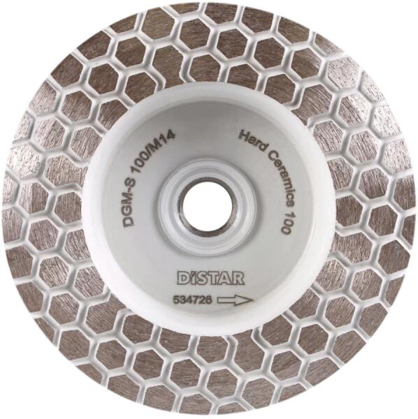 DISTAR gyémántcsiszoló korong Ø 100 mm. A csiszolólapok és kerámialapok durva csiszolásához készült. Átmérő: 100 mm; Középfurat: M14; Szemcse: 60; Száraz csiszolás. Ref: 17483524005