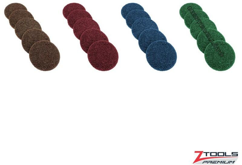 Z-Tools Ø75mm-es gyors rögzítésű vlies tárcsa finom 5db Ø75 mm-es gyors rögzítésű csiszolótárcsa vlies finom(kék) 5 db tárcsa a csomagban. Közepesen erős, hálós szerkezetű, műanyag szálakból álló, alumínium-oxid szemcséket tartalmazó felületkezelő szerszám. Univerzálisan alkalmazható fémfelületek megmunkálásához: előcsiszolási nyomok eltüntetésére, oxidá