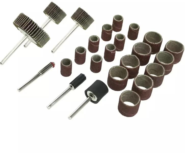 24 alkatrészből álló készlet egy prémium, precíziós kézi köszörűhöz. A készlet tartalmazza:9 db K60 minőségű, 6,3 mm átmérőjű csiszolószalagot9db K120 minőségű, 12,7 mm átmérőjű csiszolószalagot1 db31,5 mm átmérőjű lapátos korongot2db 16 mm átmérőjű lapátos korongot3 db3,2 mm átlagos szárátmérőjű tárcsátA készletlehetővé teszi a kis tárgyak és f