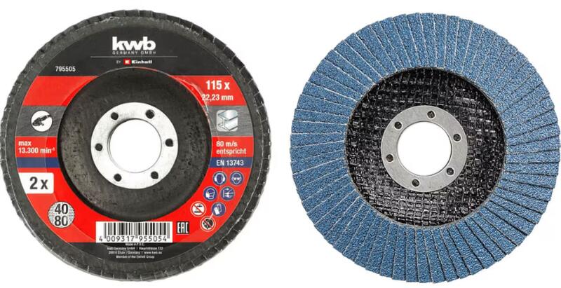 timföld bevonatú szárnyakból készült; műgyanta kötőanyag; textil alátét; nagy teljesítményéről és hosszú élettartamáról ismert; ideális kis, összetett formájú alkatrészek csiszolásához; teljesen eltávolítja a sorját, a bevonatokat és a rozsdát; 6 mm-es tüskével fúrókhoz és csavarhúzókhoz.