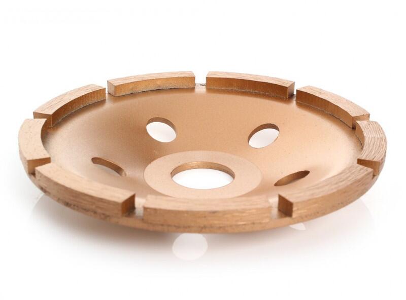 Gyémánt csiszolókorong SEGMENT 125x22,2mmGyémánt csiszolókorong 125 mm-es külső átmérővel, kerámia, beton, csempe, tégla, porózus beton, természetes vagy műkő felületek megmunkálásához. Technikai paraméterek:Külső átmérő: 125 mmBelső átmérő: 22,2 mmVastagság: 4 mmMenet: M14