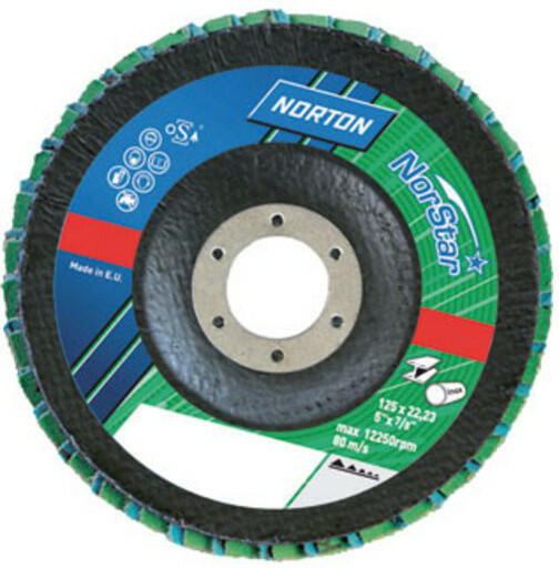 A Norstar FLD FDTF R822 / RX22 125x22 P40 tárcsa két modern, a legmagasabb minőségű csiszolóanyagot ötvöz. Kiváló minőségű csiszoló kerámia és cirkónium keverékű pengék üvegszálas hátlappal a maximális teljesítmény érdekében, kisebb nyomással. Kevesebb nyomás alkalmazásával a kezelő meghosszabbítja a korong élettartamát és csökkenti a fáradtságot. Termék in
