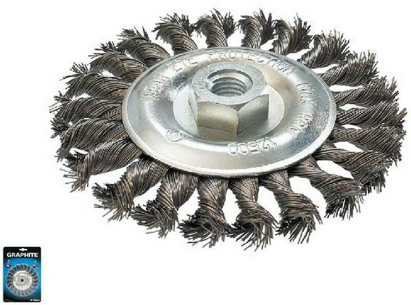 A GRAPHITE drótkefe 0,5 mm vastag rozsdamentes acél huzalból készül. A kefe megerősített kivitele lehetővé teszi a rozsdamentes és saválló acélból készült szerkezetek hatékony tisztítását. Rögzítése lehetővé teszi használatát sarokcsiszolókban. Drótkorong, M14 szárINOX, átmérő 0,5 mm fonott drót