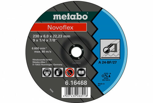 Leírás:- Novoflex minőség: nagy teljesítményű kezdő osztály - Keménység: közepes - Univerzálisan alkalmazható a fémmegmunkálás területén - Jó lehordó teljesítmény hosszú élettartam mellett - Maximális munkasebesség: 80 m/s Műszaki adatok: Paraméterek- Minőségi osztály: A 24 - Átmérő x vastagság x furat: 115 x 6 x 22.23 mm - Kivitel: hajlított - Max. fordulatsz
