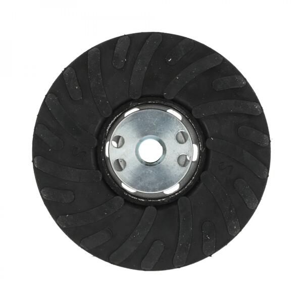 A tépőzáras csiszoló korongok felfogatására könnyen és egyszerűen használható a csapos gumitányér. Az eltérő rugalmasságú típusai révén az íves vagy egyenes felületek csiszolása egyszerű.