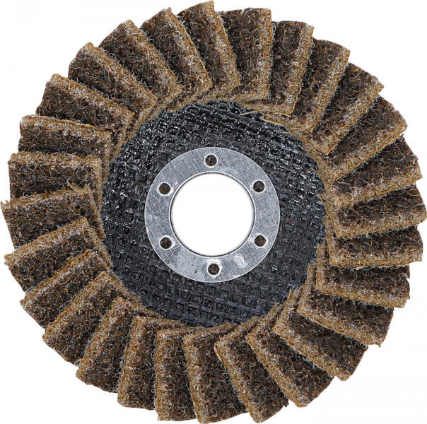 Legyező Alakú Flíz Csiszolótárcsa Legyező Alakú Csiszolóvászonnal, Üvegszálas Csiszolótányérral Felületek Előkészítéséhez És Utánpolírozásához Festett Felületek Előkészítése És Polírozása Nagy Felületek Finomcsiszolása És Finiselése Közvetlenül A Sarokcsiszolóra Szerelhető, Kiegészítő Csiszolótányér Használata Nélkül Egyenletes És Kiváló Minős