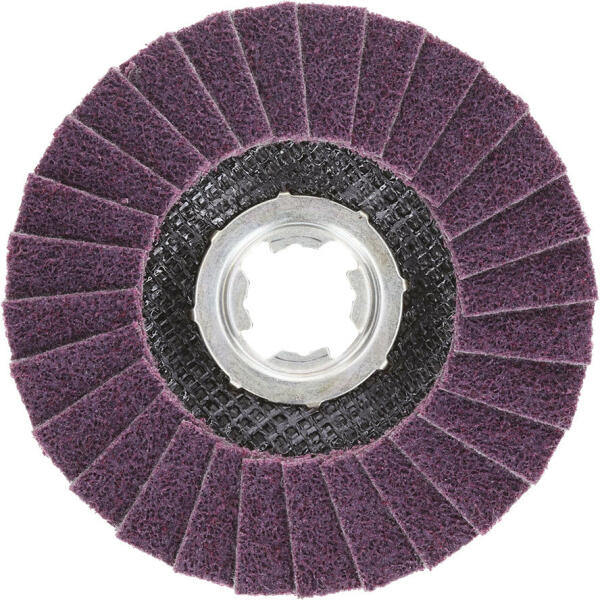 Az X551 legyezőtárcsa gyors és megbízható tartozék a sorjázásához, hegesztési varratok tisztításához és a felületi hibák eltávolításához lágyacél és rozsdamentes acél felületekről. A ferde kialakítás, a stabil hátlap és az erős csiszolószemcsék révén ez az X551 legyezőtárcsa jó anyageltávolítási képességet és egyenletes teljesítményt biztosít. Az erő