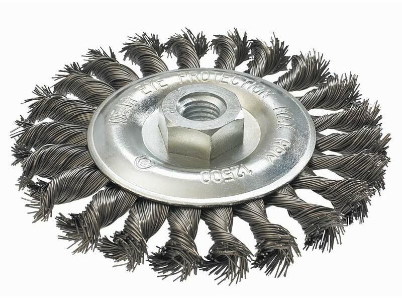 A GRAPHITE drótkefe 0,5 mm vastag rozsdamentes acél huzalból készül. A kefe megerősített kivitele lehetővé teszi a rozsdamentes és saválló acélból készült szerkezetek hatékony tisztítását. Rögzítése lehetővé teszi használatát sarokcsiszolókban. Drótkorong, M14 szárINOX, átmérő 0,5 mm fonott drót