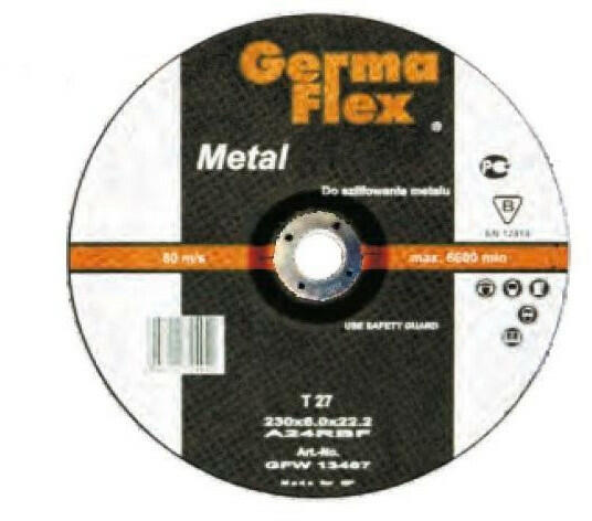 GERMAFLEX Tisztítókorong fémre 180 x 8,0 x 22,2 mm Technikai adatok: átmérő:180 mmbelső átmérő:22,2 mmvastagság:8,0 mmmax fordulatszám:8.500 rpm