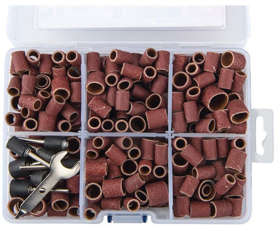 lehet használni: 404116, 404122 és 404111-hez is! max. 32.000 ford/-perc Tengely: 3,2 mm Csiszoló hengerek 3 féle finomságban és méretben: P80: (O9 mm×13mm+O12 mm×13mm+O14 mm×13mm)×120 db P120: (O9 mm×13mm+O12 mm×13mm+O14 mm×13mm)×120 db P240: (O9 mm×13mm+O12 mm×13mm+O14 mm×13mm)×100 db O6,4mm×38mm, 3 db + O9,5mm××38mm, 3 db + O12,7mm××38mm, 3 db felfogató gumihenger, 3,2