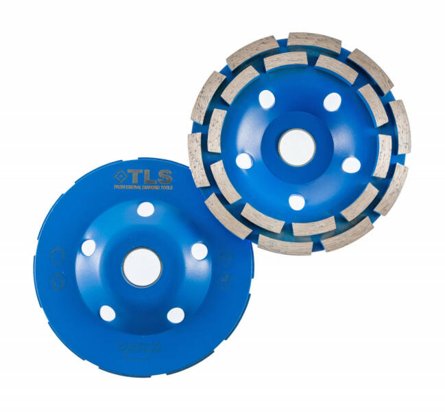 TLS DOUBLE ROW duplasoros gyémánt beton- és kőmaró tárcsa Átmérő: d=150 mm Furatátmérő: 22.23 mm Alkalmazás: száraz és vizes Szegmensvastagság : 5 mm Szemcseméret: #40/50 Alkalmazási terület: Gránit, márvány, beton, falazat, stb. TLS DOUBLE ROW duplasoros gyémánt beton- és kőmaró tárcsa: - Dupla soros gyémántszegmens - Betonhoz, falazathoz, gránithoz, márványhoz é