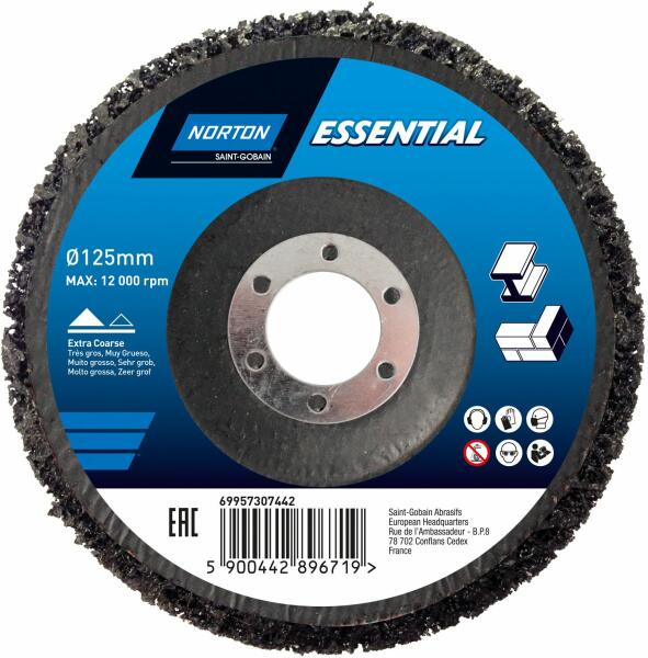 A Norton Essential nem rostkorong szilíciumkarbid csiszolószemcsékkel impregnált nejlonszálakból készülnek fémrozsda eltávolítására és kőtisztításra, így a felület tiszta és festés előtt előkészített lesz. A termék rugalmassága miatt jó választás íves és nehezen hozzáférhető területekhez. Termék információkGyártói cikkszám69957307442Méret125x22 mmSpecifik
