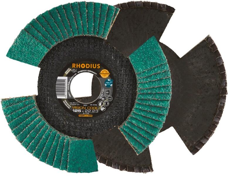 VISION COOL 125x22,23 mm Lamellás csiszolótárcsa cirkonnal. Három nyílásának köszönhetően a VISION COOL forgásakor átlátszóvá válik. Lehetővé teszi a munka eredményének folyamatos ellenőrzését. - Szabad rálátás a munkadarabra - Szabályozott anyagleválasztás - Kevesebb elszíneződés az alacsonyabb hőmérsékletű csiszolás révén - Szemcseméret: 60