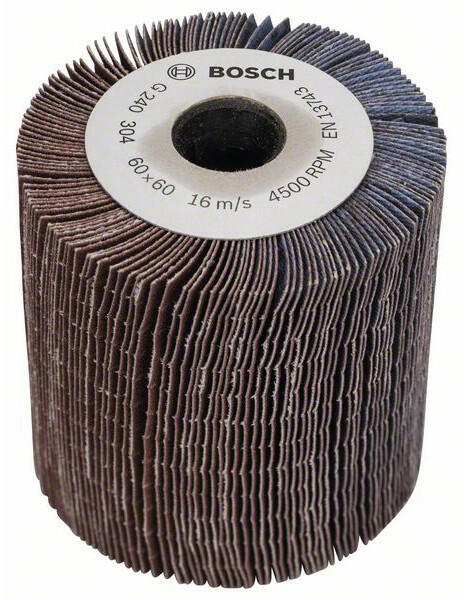 BOSCH Lamellás henger 60 mm, 240-es szemcseméret Nagy felületek csiszolására, finomcsiszolásra. A 60 mm-es lamellás henger ferdén levágott lamelláival az ívelt munkadarabok egyenetlen felületű lekerekített részei is probléma nélkül lecsiszolhatók. Nagy anyaglemunkálás.