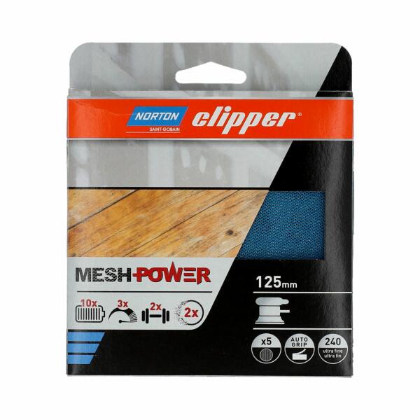 A MeshPower mátrix szerkezete ezer apró lyukat tartalmaz a por eltávolításához a test felületéről, lehetővé téve a friss levegő lélegzését a műhelyben. A MeshPower a szabadalmaztatott Norton No-Fil® technológián alapul, szárazon vagy nedvesen is felhasználhatók, és a nyitott szerkezetnek és a prémium szemcsés rendszernek köszönhetően tökéletes kivitelűek. Az öntap