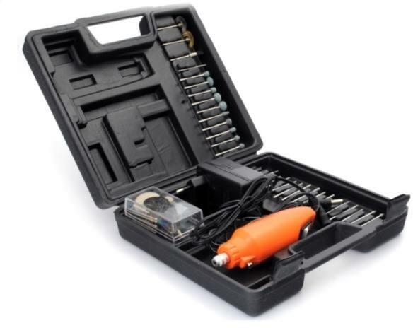 Mini gravírozó, fúró és csiszoló gép, tartozékokkal, kofferben, 12V/12000 fordulatA sokféle tartozék használatával széleskörű felhasználási lehetőségekkel. Elsősorban finom csiszoláshoz és köszörüléshez, sorjátlanításhoz, gravírozáshoz, maráshoz és fúráshoz használható. A saját kreativitása határozza meg mire használja. Tartozékok:Hálózati adapter 12V /