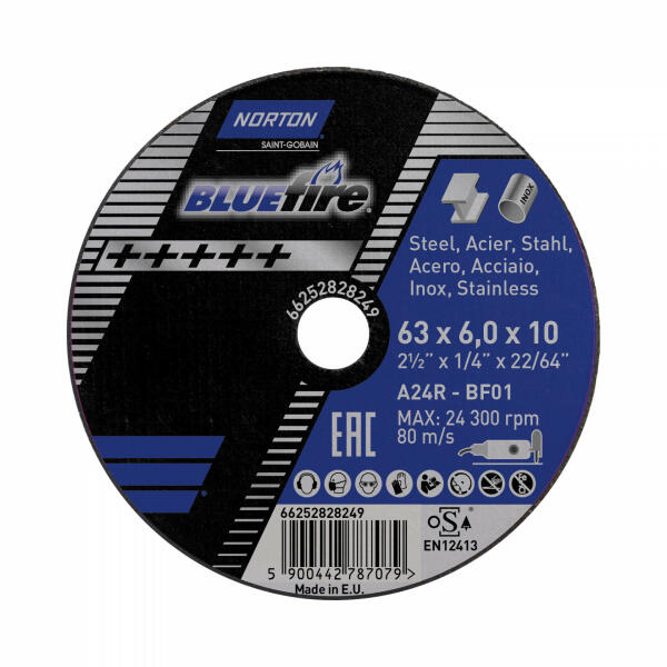 A Norton Blue Fire vágó- és köszörűkorong-sorozat kiváló minőségű fémmegmunkáló szerszámot kínál minden durva alkalmazáshoz, ideértve a hegesztés eltávolítását, a felület előkészítését, a fém eltávolítását, a rozsdásodott és korrodált anyagok átalakítását és levágását. A Norton Blue Fire a profi választás, gyors és kényelmes eredményeket hoz. A te