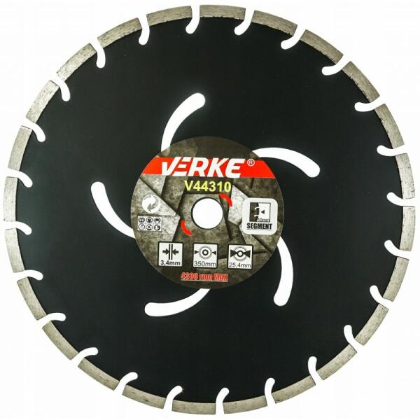 MŰSZAKI ADATOK: tárcsaátmérő: 350 mm korongvastagság: 3,4 mm belső átmérő: 25,4 mm + gyűrű 25,4 / 20 mm gyémántmagasság: 10 mm maximális sebesség: 4300 ford / perc