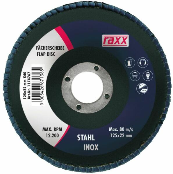 Raxx Legyezőtárcsa 125x22mm K60 finom acélhoz öntvényhez ro zsdamentes acélhoz végső csiszoláshoz (pl. hegesztési varratok) a cirkonszemcsék miatt különösen magas élettartam
