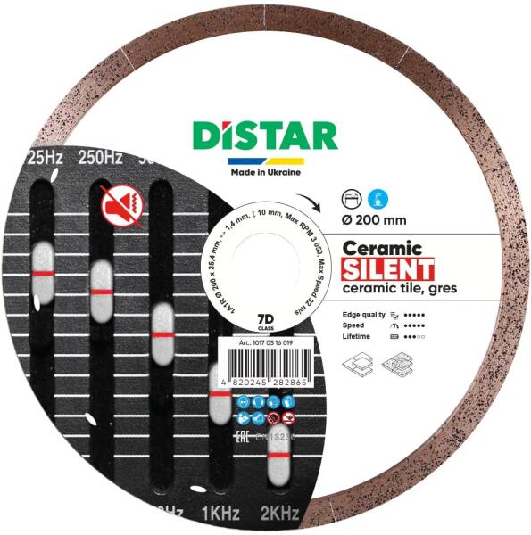 DISTAR gyémánt vágókorong a gres lapok közvetlen vágásához. Nagyon csendes vágás. Átmérő: 200 mm; Középső furat: 25,4 mm; Szegmensvastagság: 1,4 mm; Száraz vágás. Ref: 10170516019