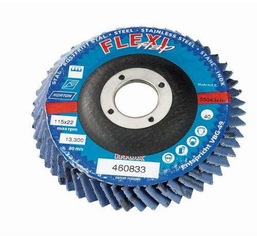 tárcsa számos anyaghoz alkalmas: acél, rozsdamentes acél, öntöttvas, alumínium, üvegszál, műanyag, fa stb. Rugalmas fülek a legösszetettebb alkatrészek megmunkálásához. A koptató ferde szárnyak az üvegszálas hordozó részét képezik. Szilárd pamut alátét, oxid csiszoló cirkónia Norzon® R822.