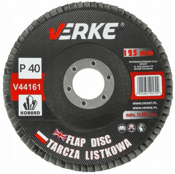 Jellemzők: -Kü lső átmérő: 125 mm -Belső átmérő (felfogatás): 22,2 mm -Szemcseméret: 40 -Alkalmas acél és fa csiszolásához