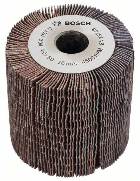BOSCH Lamellás henger 60 mm, 120-as szemcseméret Nagy felületek csiszolására, bármely típusú könnyű lemunkáláshoz. A 60 mm-es lamellás henger ferdén levágott lamelláival az ívelt munkadarabok egyenetlen felületű lekerekített részei is probléma nélkül lecsiszolhatók. Nagy anyaglemunkálás.