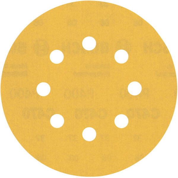 Csiszolókorongok 150 mm, 5 db, 8 lyukkal, 65 mm-es porelszívás átmérővel, excentrikus csiszológépekhez (pl. GRAPHITE 59G349 csiszológép) tervezték őket. A papír használata fához, fémhez és műanyaghoz ajánlott. A tépőzáras rögzítés megkönnyíti a hatékony és gyors cserét. A papír nyolc porelszívó lyukkal rendelkezik 65 mm-es távolságban, ami kényelmes pormentes mu