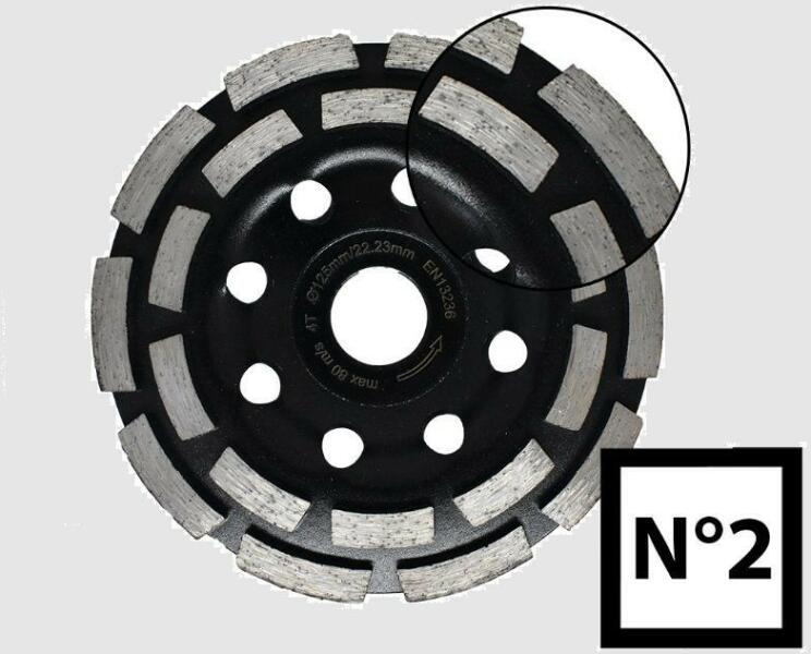Gyémántszemcsés betoncsiszoló No. 2 Gyémántszegmensek két sorban Kitűnő csiszolási teljesítmény Beton, mosott beton, terméskő, gránit csiszolásához