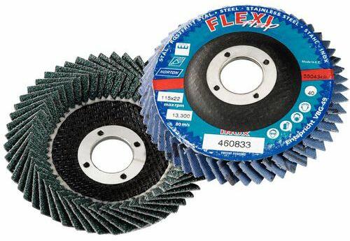 tárcsa számos anyaghoz alkalmas: acél, rozsdamentes acél, öntöttvas, alumínium, üvegszál, műanyag, fa stb. Rugalmas fülek a legösszetettebb alkatrészek megmunkálásához. A koptató ferde szárnyak az üvegszálas hordozó részét képezik. Szilárd pamut alátét, oxid csiszoló cirkónia Norzon® R822.