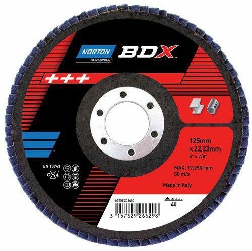 Marásra, sorjázásra és polírozásra alkalmas tárcsa. Alkalmas vasfémekhez. Üvegszálas hátlap és Norzon® R842 cirkónium-oxid csiszolóanyag. Hegesztési varratok csiszolásához.