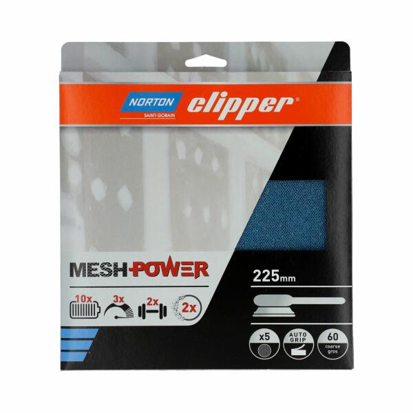 A MeshPower mátrix szerkezete ezer apró lyukat tartalmaz a por eltávolításához a test felületéről, lehetővé téve a friss levegő lélegzését a műhelyben. A MeshPower a szabadalmaztatott Norton No-Fil® technológián alapul, szárazon vagy nedvesen is felhasználhatók, és a nyitott szerkezetnek és a prémium szemcsés rendszernek köszönhetően tökéletes kivitelűek. Az öntap