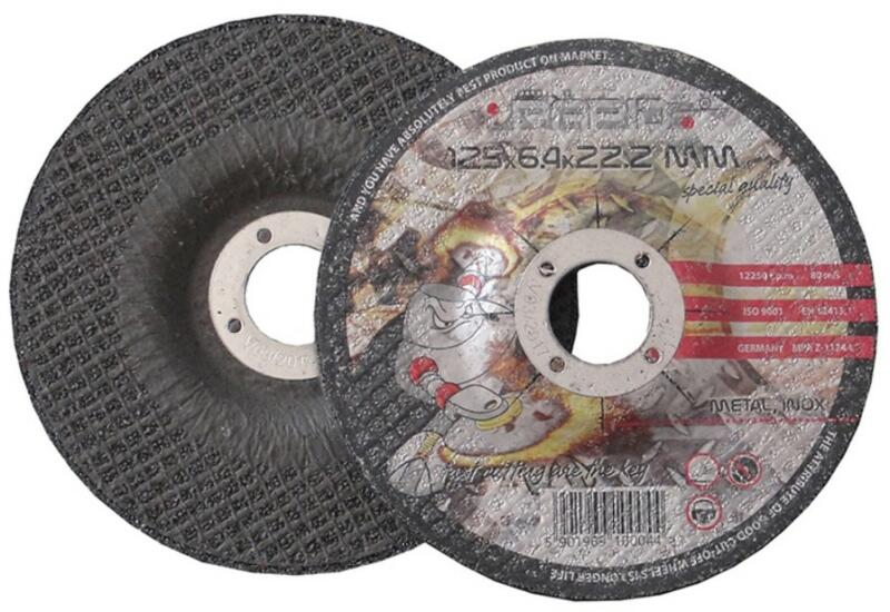 Csiszolókorong fémhez 125mm x 6.4mm x 22.2mmCsiszolókorong fémhez sarokcsiszolóra, alkalmas kemény szénacél, bádog és színesfémek javítására. Technikai paraméterek:Korong átmérője: 125 mmVastagság: 6,4 mmKorongnyílás átmérője: 22,2 mm
