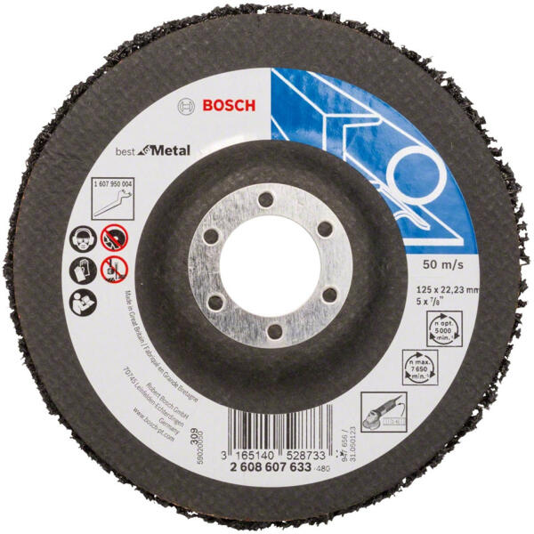 Az N377 Best for Metal tisztítókorong fém- és téglafelületek gyors tisztítására használható A 3D nyitott filcszerkezet gondoskodik az eltömődés nélküli gyors anyageltávolításról Szilíci um-karbid filcbevonata a szerkezetet megváltoztatja, és éles vágóéleket hoz létre az állandó anyageltávolításért. 22,23 mm-es furattal normál rögzítőanyás sarokcsiszolókhoz A