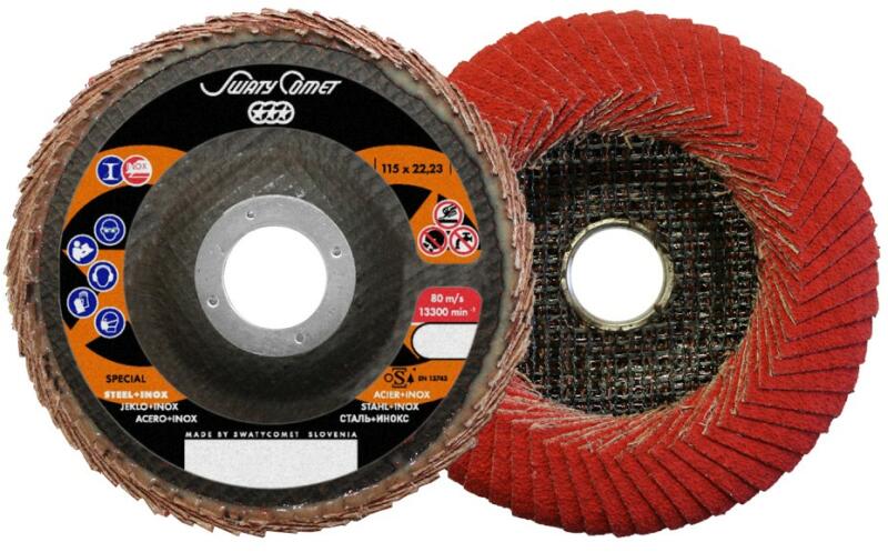 Super Blue 5 lapos csiszolókorongok, közepes és nagy nyomású alkalmazásokhoz acélon és keményfémeken. Tartós poliészter hátlap a hosszú tárcsa élettartamért és nagy anyagleválasztási sebességért. NorZon szemcse (prémium cirkónium) a gyors vágáshoz a munka kezdetétől feladat.