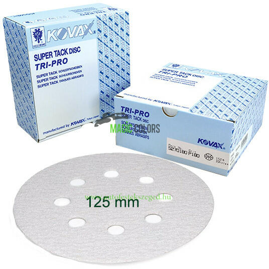 Kovax Tri-Pro 125mm-es tépőzáras 8 lyukas körpapír (P60) Szemcseméret: P60 Átmérő: 125 mm Lyukak száma: 8 Kovax Tri-Pro 125mm-es tépőzáras 8 lyukas körpapír (P60) Szemcseméret: P60 Átmérő: 125 mm Lyukak száma: 8 Kiszerelés: 100db/doboz Kíváló minőségű csiszolóanyag, amellyel egyenletes felültet hozhatunk létre. Kiváló vágási képesség. Rugalmas papír hosszú él