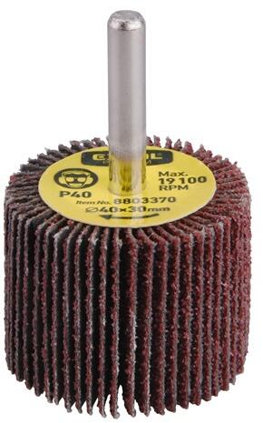 timföld bevonatú szárnyakból készült; műgyanta kötőanyag; textil alátét; nagy teljesítményéről és hosszú élettartamáról ismert; ideális kis, összetett formájú alkatrészek csiszolásához; teljesen eltávolítja a sorját, a bevonatokat és a rozsdát; 6 mm-es tüskével fúrókhoz és csavarhúzókhoz.