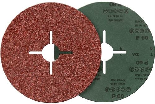 Fíber csiszolókorong, korund Vulkánfíber hordozó anyag Sűrű szórás Univerzális csiszolási megmunkáláshoz, pl. rozsdátlanítás, revétlenítéséhez és sorjázás fémeken