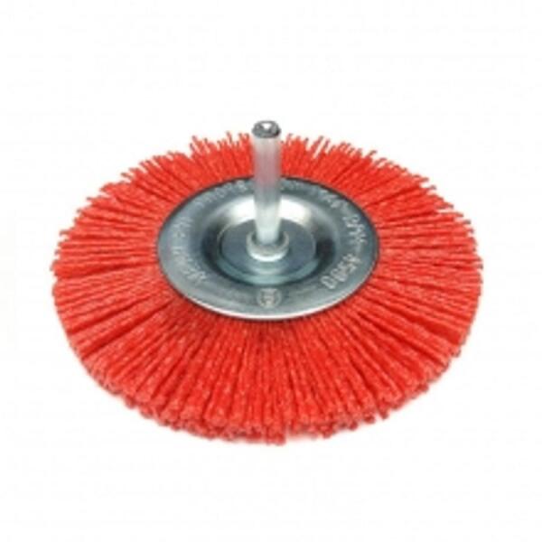 A fúrógépre vagy csavarhúzóra szerelhető, alumíniummal bevont nejlon sörtékből készült csiszolókefe. A kefe alumínium-oxiddal bevont nejlonszálakból készül, és acél, színesfémek kíméletes tisztítására, régi bevonatok és öregedő fa tisztítására szolgál. Technikai adatok: átmérő: 100 mm Beszerelőcsap átmérője: 6 mm Maximális sebesség: 4500 fordulat/perc