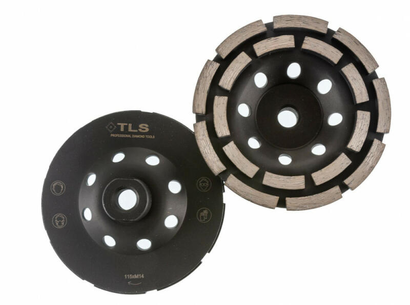 TLS DOUBLE ROW duplasoros gyémánt beton- és kőmaró tárcsa Átmérő: d=230 mm Furatátmérő: M14 mm (menetes csatlakozás) Alkalmazás: száraz és vizes Szegmensvastagság : 5 mm Szemcseméret: #40/50 Alkalmazási terület: Gránit, márvány, beton, falazat, stb. TLS DOUBLE ROW duplasoros gyémánt beton- és kőmaró tárcsa: - Dupla soros gyémántszegmens - Betonhoz, falazathoz, gráni