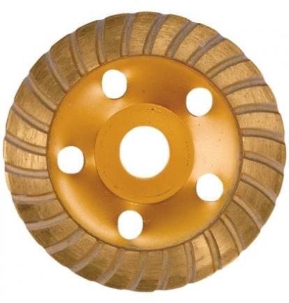 Kőzetek csiszoláshoz alkalmas gyémántszórt "turbó" acél tárcsa 125mm-es sarokcsiszoló gépekre. Alkalmas beton, tégla, ytong, természetes kőzetek és hasonló anyagok hatékony csiszolásához, alakításához. A gyémántszórt rétegnek köszönhetően a munka gyorsabb és hatékonyabb mint egyéb hagyományos kőcsiszoló korongokkal. , Tárcsaátmérő: 125 mm Furatátmérő: 22,2