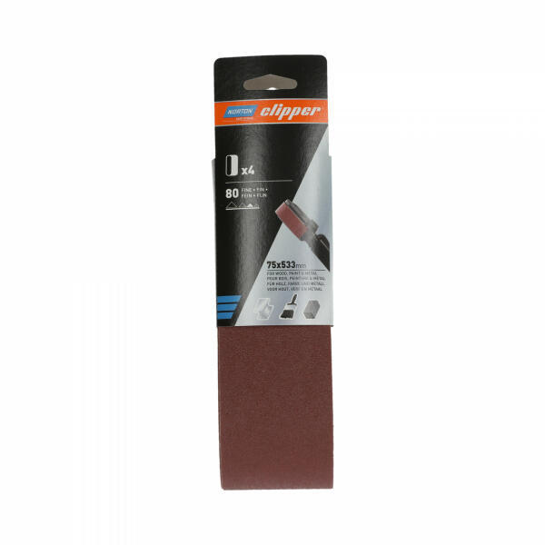 A Norton Clipper alumínium -oxid csiszolószalagok 75x533mm és 100x610mm átmérőben kaphatók. A nagy teljesítményű csiszolóanyag gyors vágási műveletet és nagy anyagleválasztást biztosít, így ideális az általános célú alkalmazásokhoz. A végtelenített szalagok megfordíthatók, így mindkét irányban használhatók a gépen. Termék információk:Gyártói cikkszám:662611