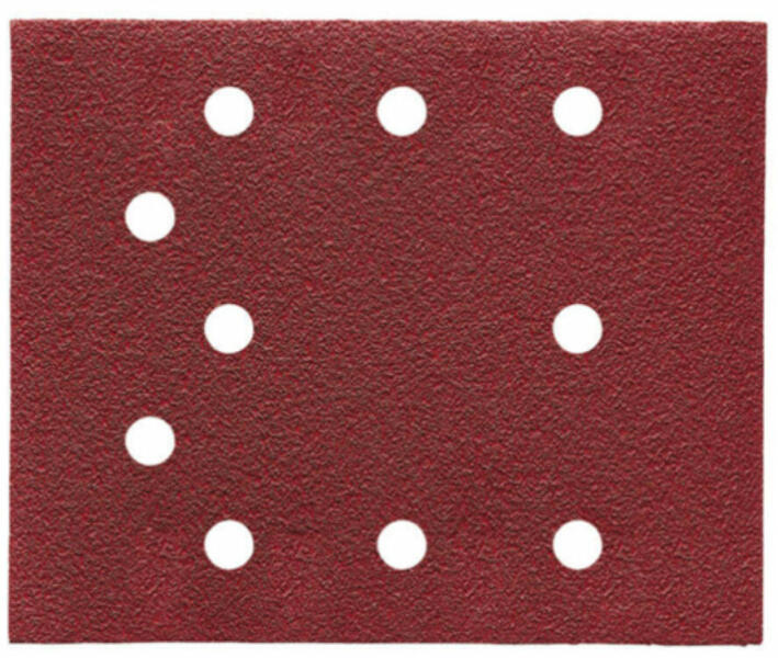 Perforált csiszolópapír fa, fém, festék, lakk, vakolat eltávolításához. Szemcseszerkezet: olvasztott alumínium, félig nyitott Műgyanta kötésű speciális szakítószilárdságú papír 10db/cs