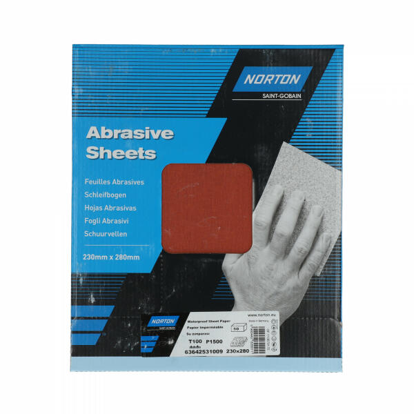 A Norton T100 Alumina vízálló lemezeket kifejezetten nedves és száraz megmunkálásra készítették. A T100 lemezek jól eltávolítják a fölösleges anyagot, kiváló minőségű kivitelben és kiváló simaságban részesülnek. A rugalmas latex háttér lehetővé teszi az egyenetlen és alakú felületekkel való munkát. Ez kiváló megoldás az autóipar és a famegmunkálás számá
