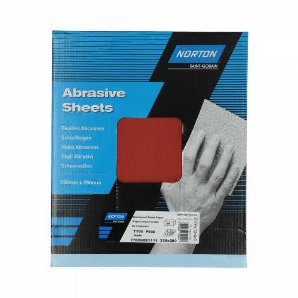 A Norton T100 Alumina vízálló lemezeket kifejezetten nedves és száraz megmunkálásra készítették. A T100 lemezek jól eltávolítják a fölösleges anyagot, kiváló minőségű kivitelben és kiváló simaságban részesülnek. A rugalmas latex háttér lehetővé teszi az egyenetlen és alakú felületekkel való munkát. Ez kiváló megoldás az autóipar és a famegmunkálás számá