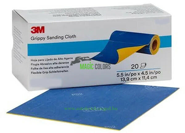3M Grippy Csiszolókendőtekercs, 35109, 139 mm x 114 mm, P320 (20db/doboz) Szemcseméret: P320 Méret: 139mm x 114mm 3M Grippy Csiszolókendőtekercs, 35109, 139 mm x 114 mm, P320 (20db/doboz) A 3M Grippy Sanding Cloth kendők kiváló csiszolási és finiselési teljesítményt nyújtanak. Rugalmasak, jól tapadnak és kiegészítő eszköz nélkül is stabilan használhatók nedves vagy poros k