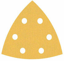 Tépőzáras csiszolópapír delta 140 x 140 x 80 mm, K 100, 5 db. 54H012 GRAPHITE 140x140x80 mm-es méretű. A 100-as szemcsenagyságú, és delta rezgőcsiszolókhoz (pl. GRAPHITE 59G336 csiszológép) tervezték. A papír használata fához, fémhez és műanyaghoz ajánlott. A tépőzáras rögzítés megkönnyíti a hatékony és gyors cserét. A papír porelszívó lyukakkal rendelkezik, íg